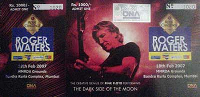Roger Waters, ex-member of the legendary band Pink Floyd, performed in Mumbai on Feb 18, 2007, as part of his world tour of ‘The Dark Side Of The Moon’. Till a month before the show, my laid back, lazy bum of a brother was too confident that we’d manage to get in @ last minute. But as the days passed, his confidence too started shaking. All of last week they were giving away the passes through simple contests on the radio, and that made me feel even more bad for not getting mine. We wanted to go for the show but 5 days before the show the passes we were looking for, were sold out.
