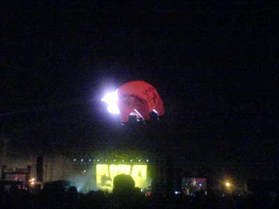 The show was divided into two parts. In the 1st, he played songs like ‘Breathe’, ‘Mother’, ‘Shine on you crazy diamond’, ‘Wish you were here’, etc. He also played a new song which I quite liked called ‘Leaving Beirut’ – totally kicking ‘Uncle Sams’ arse! A huge inflated pink colored pig with graffiti and messages was paraded around and set free to float away in the air. It was awesome.